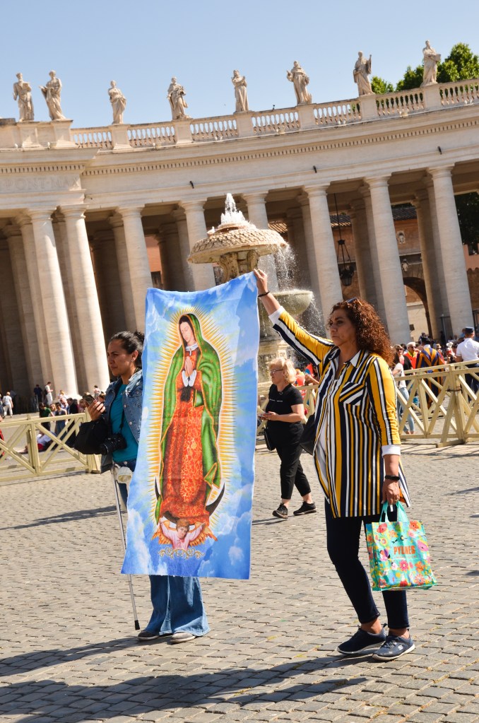 We ended with the Vatican. We timed our visit for a Wednesday when the Pope makes a public appearance in St. Peter’s Square. If you look really, really closely at this next picture you can see him in his Pope-mobile, slowly making his way through the crowd to the front: